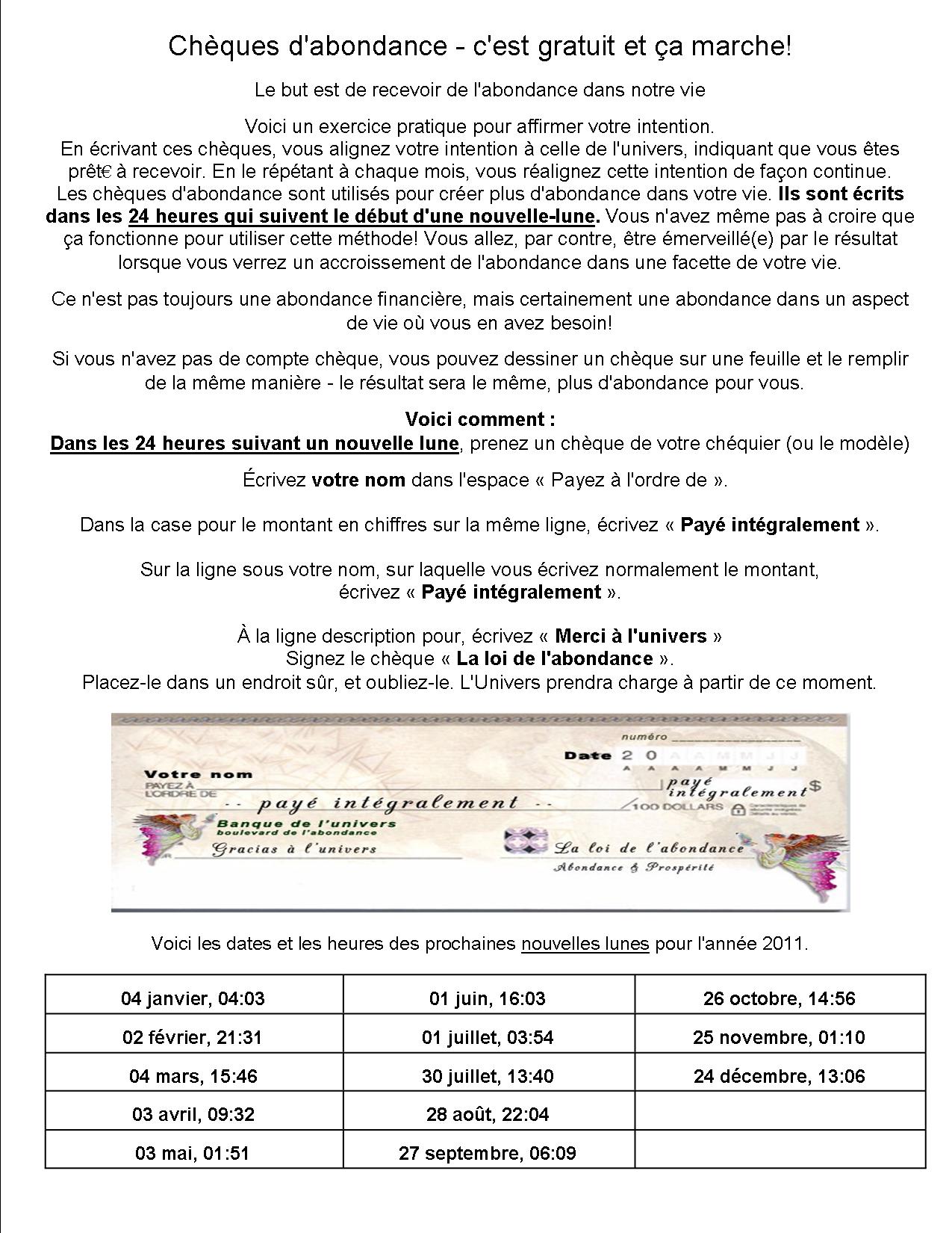 Chèque d’abondance 2011