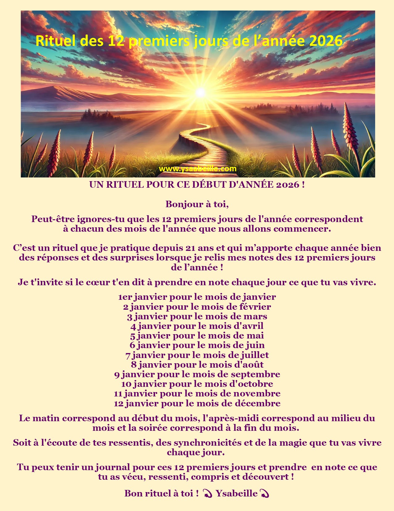 • Rituel 12 premiers jours de l’année 2026